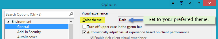 I recommend the changes below to make Visual Studio a more effective tool. These settings are optional, and in time, you will develop your personal preferences.