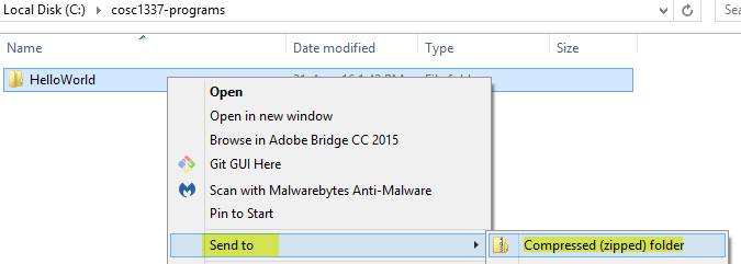Now we are ready to compress the project directory and submit it to Blackboard.