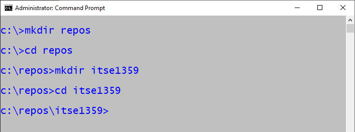 Let's begin by creating a location to store our programs. Use File Manager to create the directory C:\repos\itse1359 as shown.