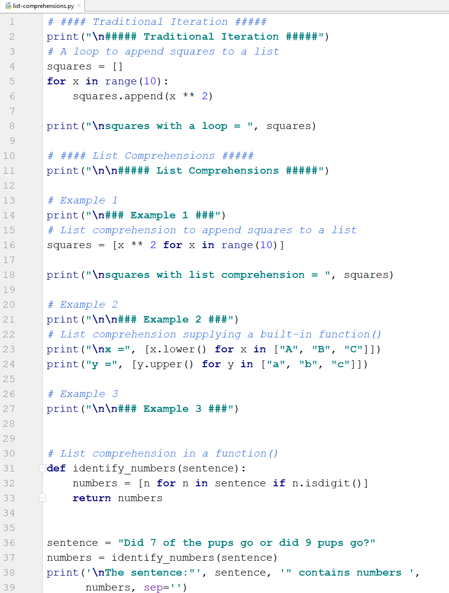 - Lists that are returned from list comprehensions have standard variable lifetime. However, generators are consumed after one iteration.