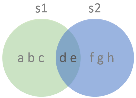 | s1.union(s2) | returns all elements from both; same as s1 | s2 |