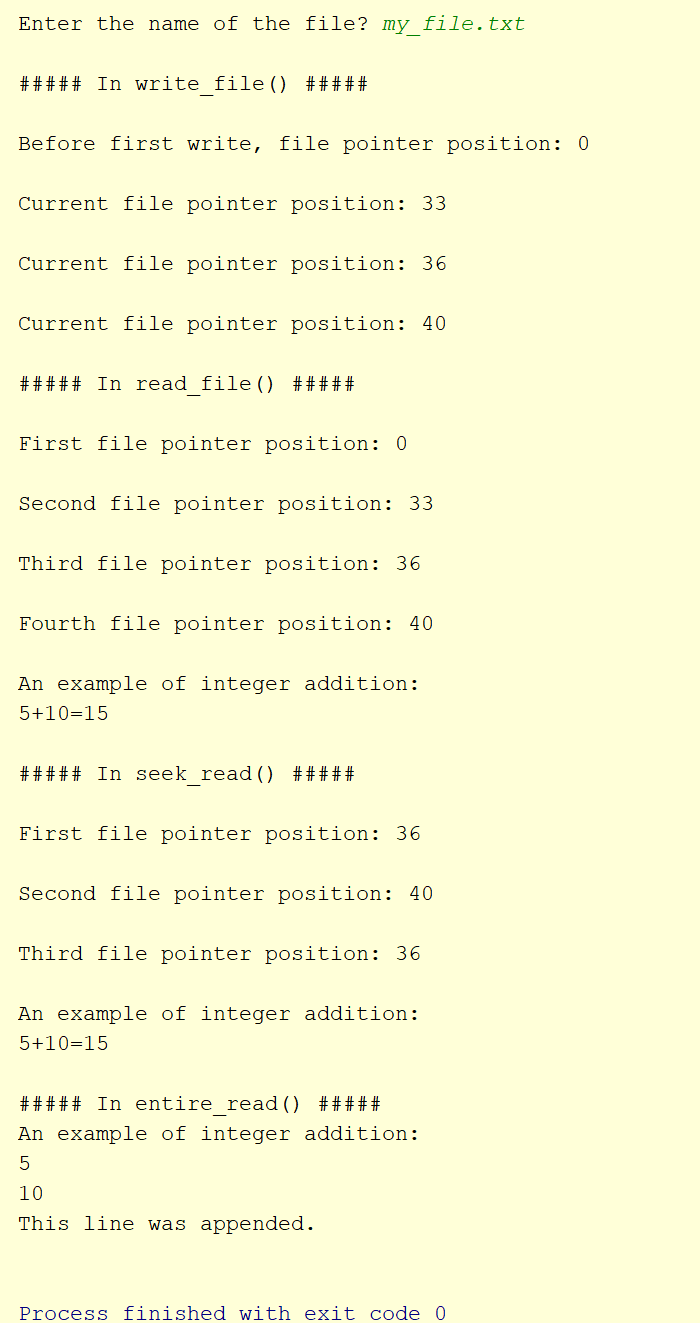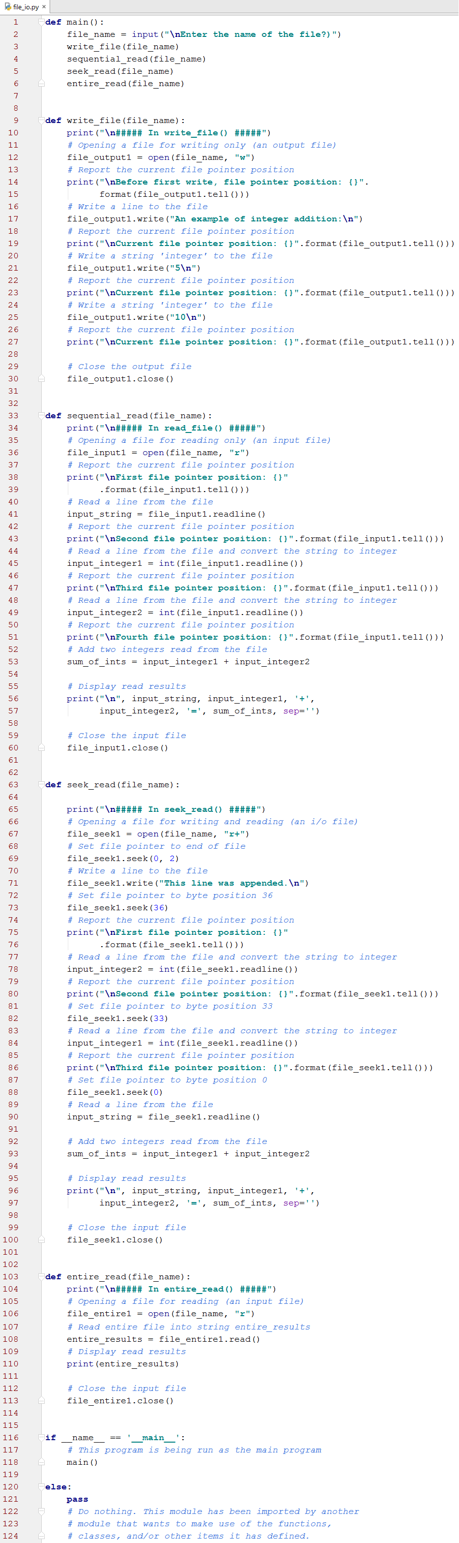 • binary - The binary operations are specified by the b character in the file access mode. Examples of binary file types include: images, PDFs, word proccessing documents, spreadsheets, BLOB (Binary Large Objects), and executables. Every binary file type must be processed with special handling which is typically performed by import modules. For example, PyPDF2 and python-docx are modules used to process PDF and MS Word files respectively.