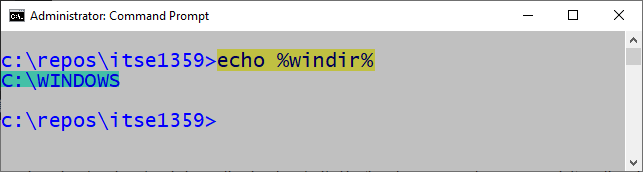 If interested, to determine the location or your %windir%, use the echo command as shown. You can see that %windir% on my machine is C:\WINDOWS.