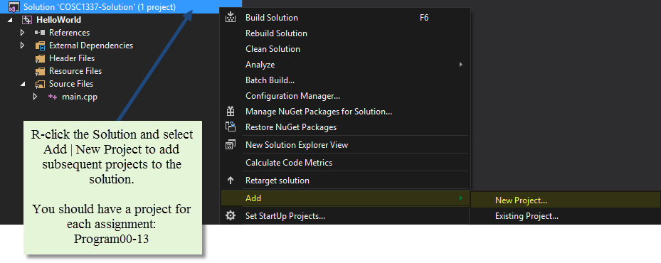 R-click the COSC1337-Solution to add another project.