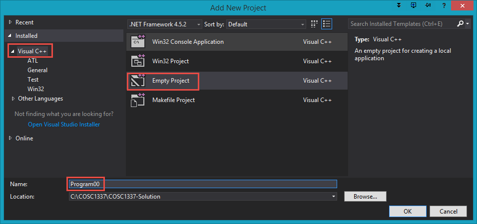 - Create one solution and create a project for each program assignment within that one solution. Compress and upload the appropriate project when complete with each assignment. Containing multiple projects within one solution makes it more convenient to copy and move files between projects while working in Visual Studio. The steps below describe this process.