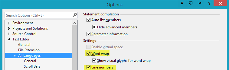I recommend the changes below to make Visual Studio a more effective tool. These settings are optional, and in time, you will develop your personal preferences.